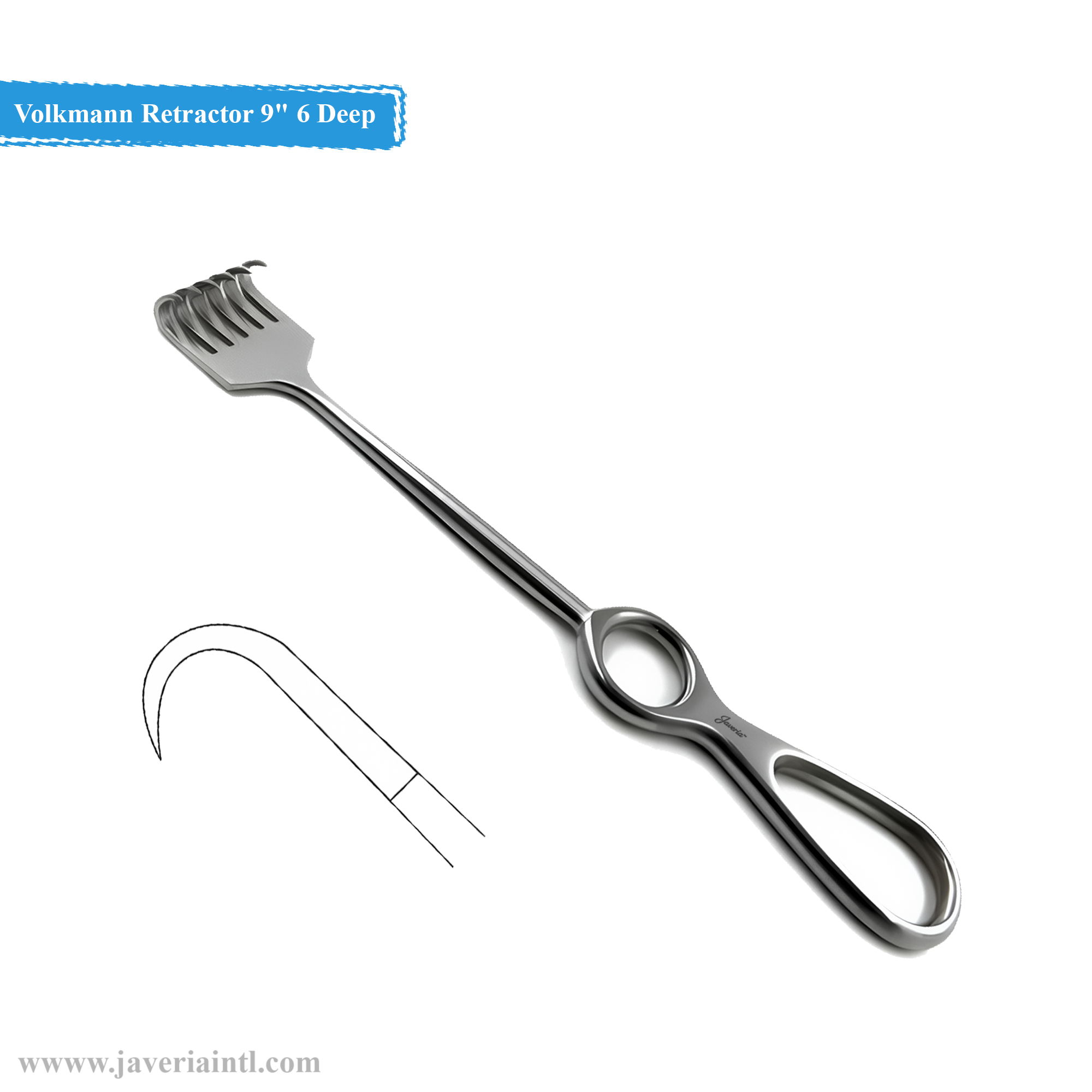 Volkmann Retractor 9″ with 6 deep sharp prongs is a surgical retractor designed for effective tissue separation and exposure in deep surgical fields. Its sharp prongs ensure a firm grip, making it ideal for holding back soft tissue during orthopedic, general, and plastic surgeries.